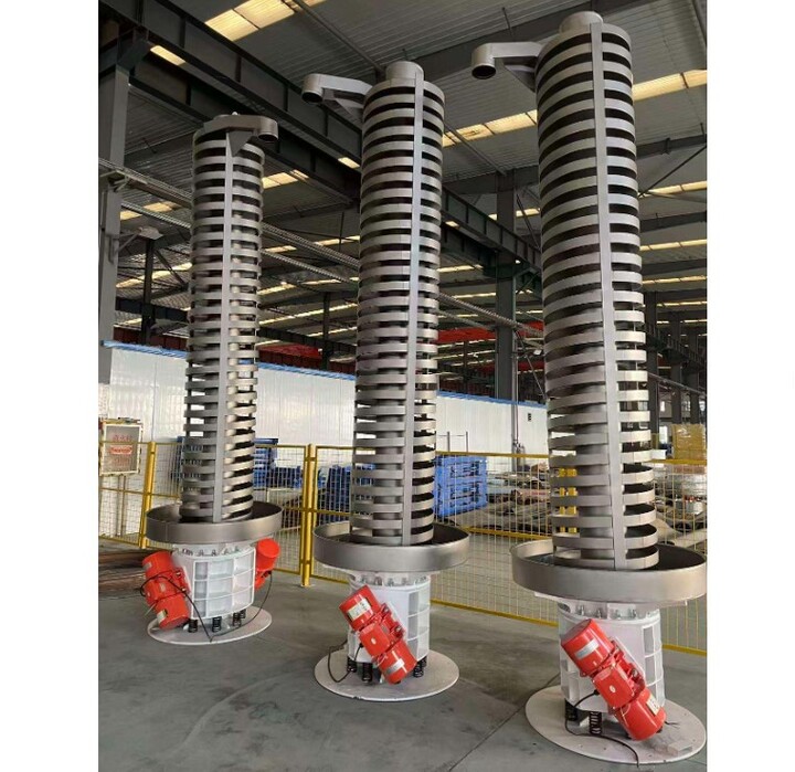 垂直振動提升機是促使物料做圓形和向上運動的,以螺旋的形式輸送物料的。在物料的輸送槽設計時需要注意以下幾點: