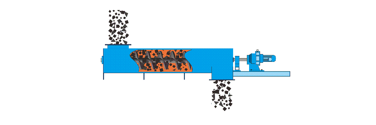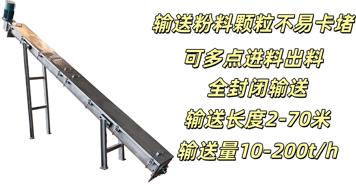 螺旋軸與水平面的夾角小于15°布置的螺旋輸送機。